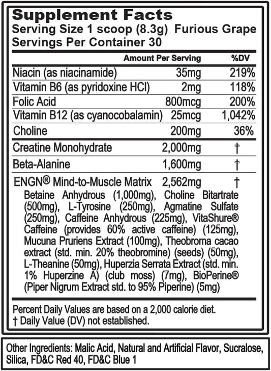 Evlution EVL Intense Pre Workout Powder - ENGN Energizing Drink for Men with Creatine, Beta Alanine, Caffeine, L Theanine - Furious Grape Flavor for Energy and Focus