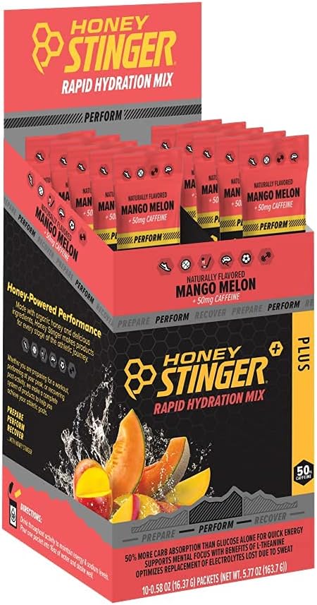Honey Stinger Mango Melon Rapid Hydration Powder - Electrolyte Multiplier for Exercise, Endurance, and Performance - Sports Nutrition for Home & Gym - Pre and Post Workout - 10 Packets
