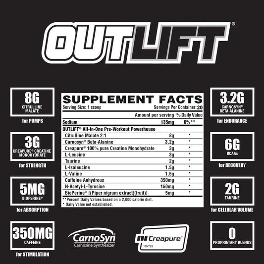 Nutrex Research Outlift Pre-Workout Powerhouse, Citrulline, BCAA, Creatine, Beta-Alanine, Taurine, Fruit Punch, 20 Servings