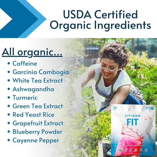 FITTEAM Fit Sticks: Organic Energy Drink Mix for Mental Focus, Energy Boost & Mood Support - 30 Stick Packs