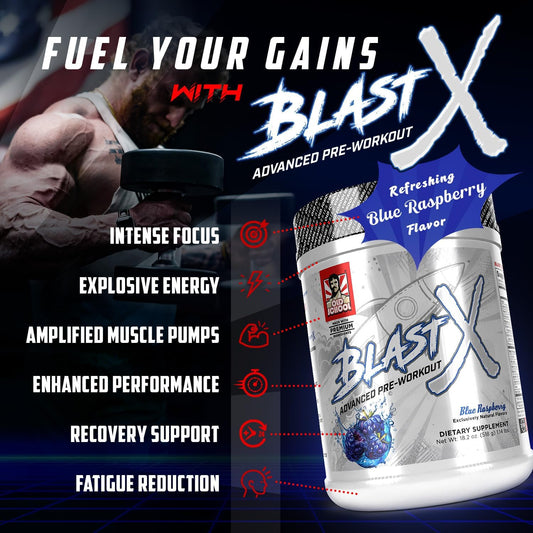 Intense Energy Booster Pre Workout Powder for Men & Women - Natural Caffeine, Beta Alanine, Citrafuze™, L-Citrulline & Taurine - Blast X Advanced Formula for Strength, Focus & Endurance