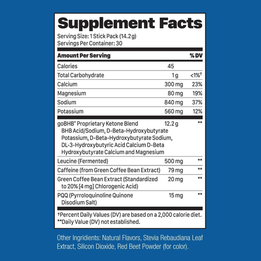 Natural Ketones Nootropic Pre Workout Powder - Sugar Free & Caffeine Free for Enhanced Energy and Focus with Electrolytes (30 Servings)