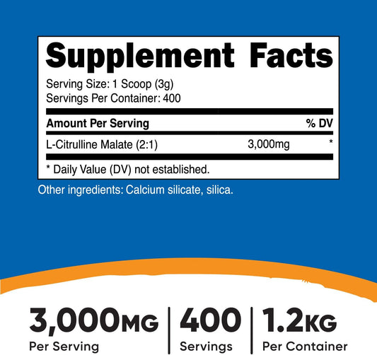 Nutricost L-Citrulline Malate Powder 2:1 Ratio - 1.2KG - Pure Amino Acid Supplement