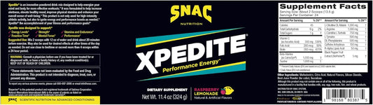 SNAC XPEDITE Raspberry Lemonade Preworkout Powder - Performance Energy Drink Supplement, 24 Servings