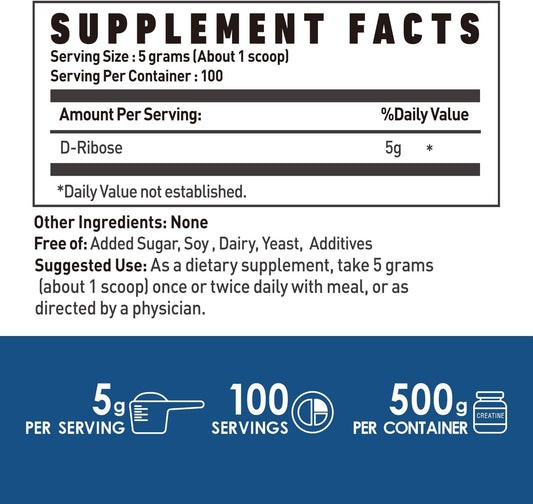 500g NUTRI POTENTIA Pure D-Ribose Powder Supplement for Energy Support - Unflavored and Gluten Free