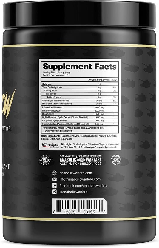 Anabolic Warfare Pump-N-Grow Fruit Explosion Pre Workout Supplement - Caffeine Free Muscle Pump with L-Citrulline, L-Arginine, Beta-Alanine - 30 Servings