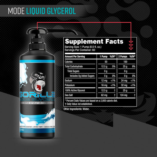 Gorilla Mind Gorilla Mode Liquid Glycerol Pre-Workout for Intense Pumps and Increased Endurance - Hydrating Formula / 33 FL OZ (Unflavored)