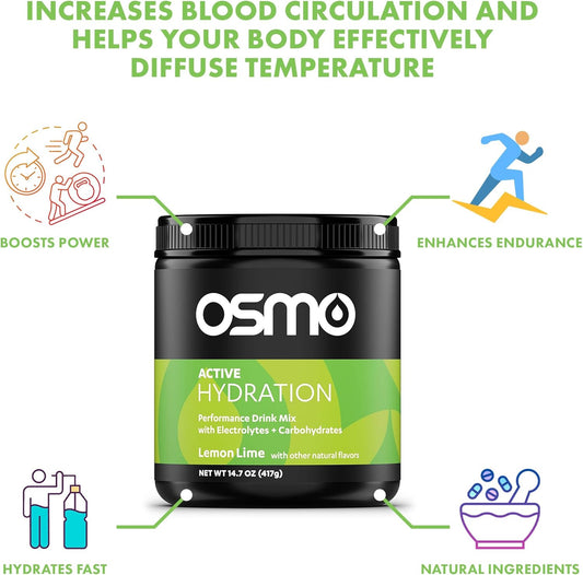 Osmo Active Hydration Electrolyte Powder with Natural Ingredients - Lemon Lime Flavor, Boosts Hydration and Endurance, Includes Sodium, Magnesium, Potassium, Carbs, and Vitamins