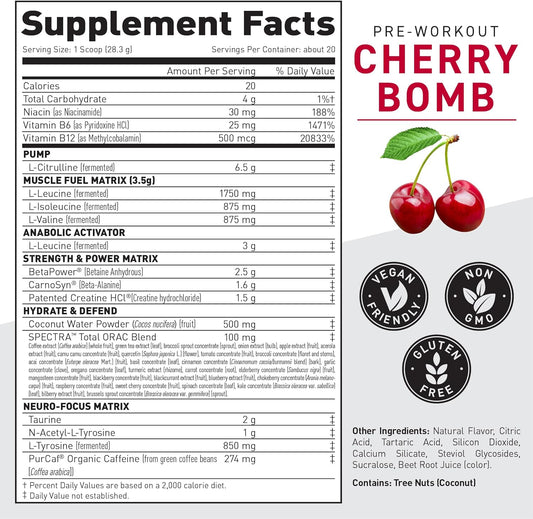 Pre-Kaged Cherry Bomb Pre Workout Powder - Formulated with Creatine, Beta Alanine, and Pure Caffeine - 20 Servings