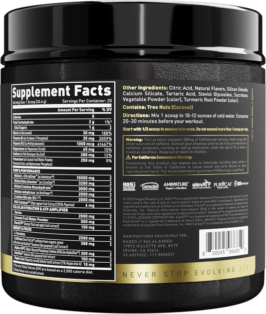 High Stimulant Kaged Pre Workout Powder for Men & Women - Energy & Focus Blend with L-Citrulline, Beta Alanine, Creatine, Organic Caffeine, Strawberry Lemonade Flavor