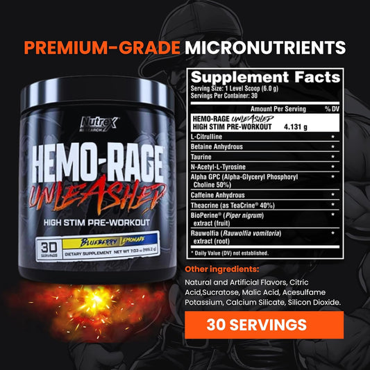 Nutrex Research Hemo-Rage Extreme Pre Workout Powder - Blueberry Lemonade | High-Stim Energy, Focus, Endurance & Pump Booster Supplement