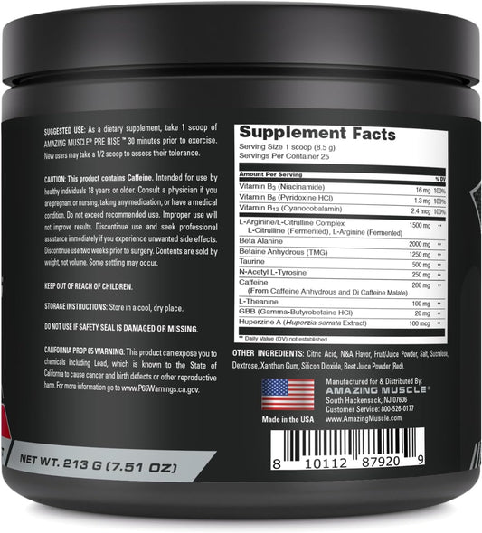 25 Servings of Fruit Punch Pre-Workout Powder with Caffeine & Beta-Alanine for Men & Women by Amazing Muscle