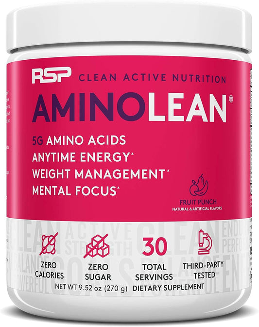 AminoLean Pre and Post Workout Bundle - Energy & Recovery - Fruit Punch & Tropical Island Punch - 30 Servings each