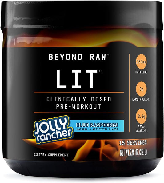 Beyond Raw Lit Blue Raspberry Pre-Workout Supplement - 15 Servings, Clinically Dosed