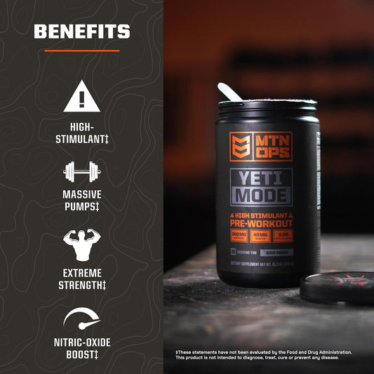 MTN OPS Yeti Mode Pre-Workout Powder - Sour Smash Flavor, High-Stimulant with Caffeine, Creatine, Beta-Alanine - 30 Servings