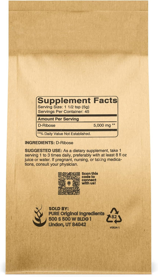 Non-GMO Gluten-Free D-Ribose Nutritional Supplement with Pure Original Ingredients in Unflavored 8oz Bottle