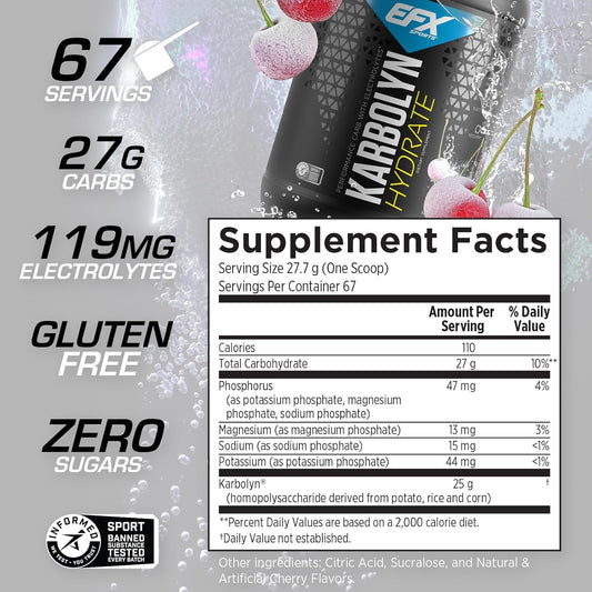 EFX Sports Karbolyn Hydrate White Cherry Frost - Carbohydrate Powder with Electrolytes for Fuel & Hydration, Sugar-Free Drink Mix (66 Servings)