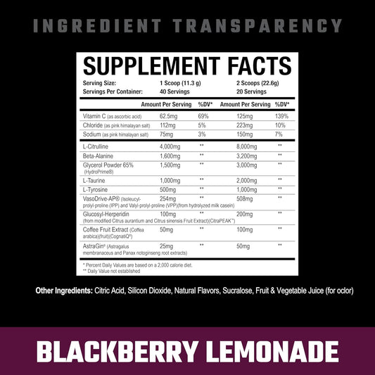 Axe & Sledge Hydraulic Stimulant-Free Pump Pre-Workout Powder - BlackBerry Lemonade, 40 Servings