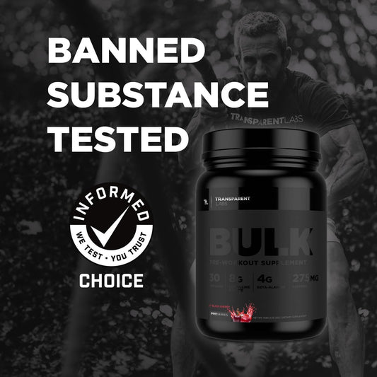 Bulk Black Pre Workout by Transparent Labs - Clinically Dosed Sugar-Free Preworkout with Beta Alanine, Citrulline Malate, & Caffeine. 30 Servings, Cherry Kiwi Flavor for Men and Women