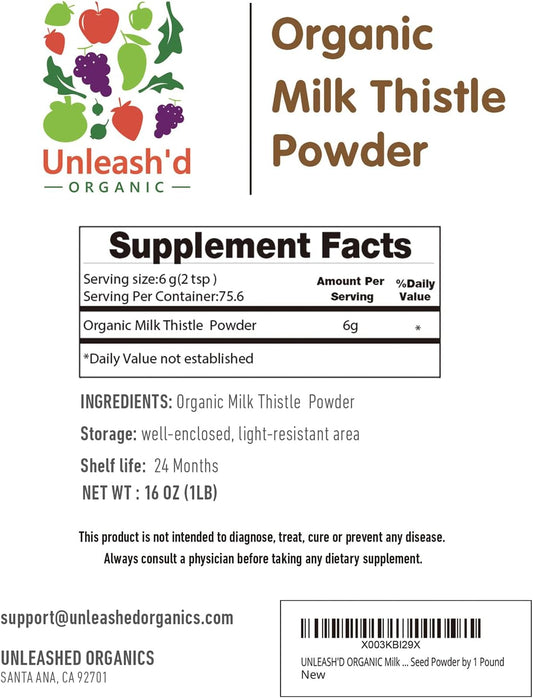 Organic Milk Thistle Powder 2-Pack: Rich in Silymarin, Antioxidants, Immune Support - 100% Pure & Organic