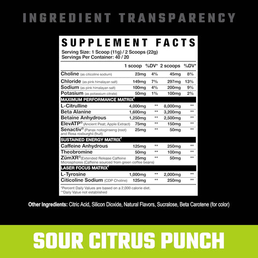 Axe & Sledge Intake Pre-Workout Supplement, Sour Citrus Punch Flavor, Available in 20 or 40 Servings