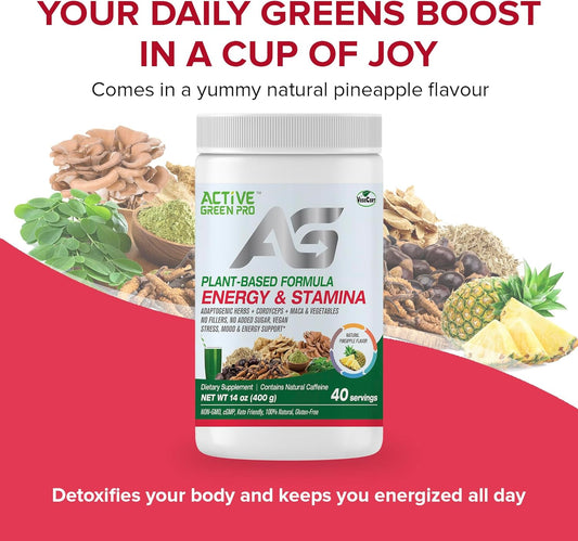 Plant-Based Energy & Stamina Powder with Adaptogenic Herbs, Cordyceps, Maca - No Fillers, 40 Servings
