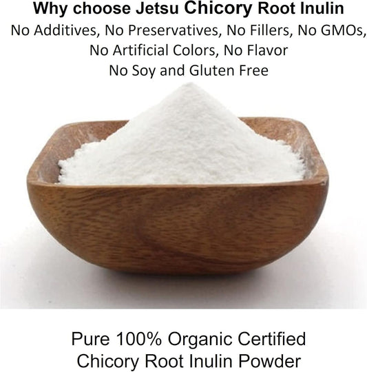 Organic Chicory Root Inulin Powder - Soluble Fiber Prebiotic for Gut Health, Calcium Absorption, Friendly Bacteria, 8oz