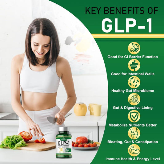 GLP-1 Probiotic Capsules - 10 Billion CFU Multi-Strain Supplement for Men & Women - Naturally Boost GLP-1 Production with Prebiotics - 60 Capsules
