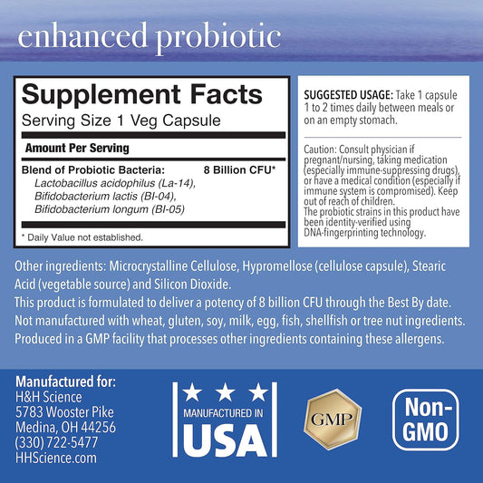 Probiotic Supplement for Balanced Skin & Digestive Health - 8 Billion CFU, 3 Strains, 60 Capsules, Vegetarian, Non-GMO