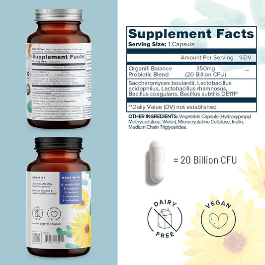 Organifi Balance Probiotics: 5 Resilient Strains for Digestive Health - 30 Vegan Capsules
