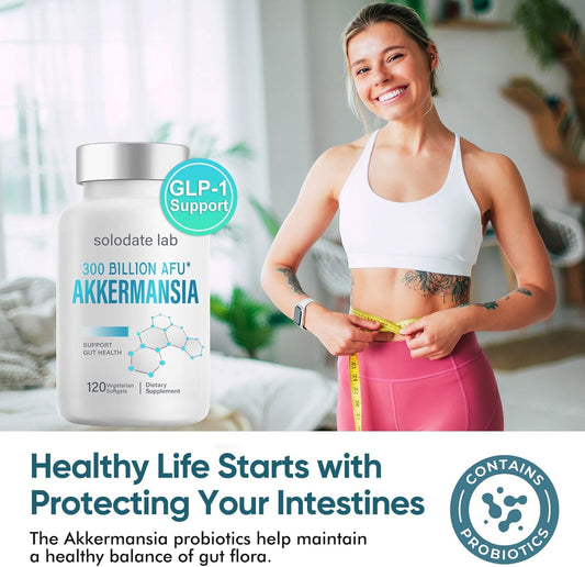 Akkermansia Probiotic with Prebiotic Fiber for GLP-1 Production and Gut Health - 120 Capsules