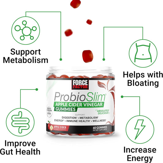 ProbioSlim Apple Cider Vinegar Gummies 2-Pack with Organic ACV, LactoSpore Probiotics, Prebiotics, 120 Gummies for Digestion & Immune Health