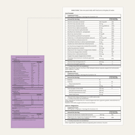 Prenatal Pack for 2nd Trimester - Daily Pregnancy Vitamins with Omega DHA, Calcium, and Magnesium - Soy-Free Non-GMO (30 Pill Packs)