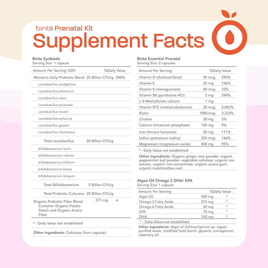Binto Prenatal Supplements 1 Month Supply - Multivitamin, Probiotics, Iron, DHA, Folate - Non-GMO & Vegetarian