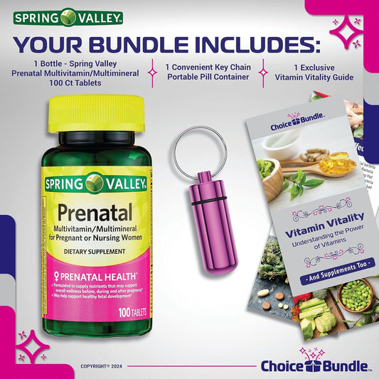 Prenatal Multivitamin Multimineral Tablets for Pregnant & Nursing Women - 100 Ct Bundle with Vitamin Guide & Pill Container