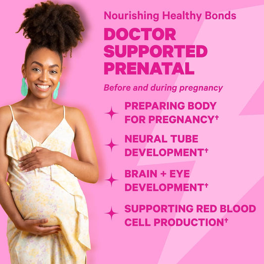 Prenatal Vitamins with Choline, Folate, and Vitamin D for Fetal Growth and Brain Development - 26 Essential Nutrients - Dietitian-Formulated - OBGYN Recommended - Non-GMO - 30 Servings