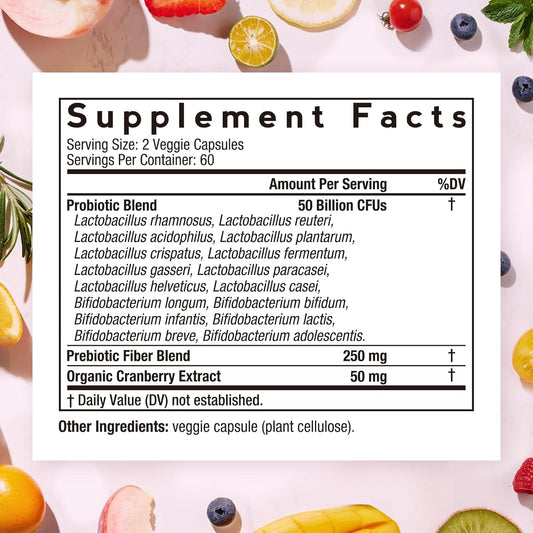 Organic Prebiotic Cranberry Probiotics for Women - 50 Billion CFU, 16 Strains - 120 Capsules x2 - Shelf Stable, Delayed Release - 60 Day SupplyVendor:Doctor's RecipesRegular price $135.49 AUDRegular priceUnit price / per-