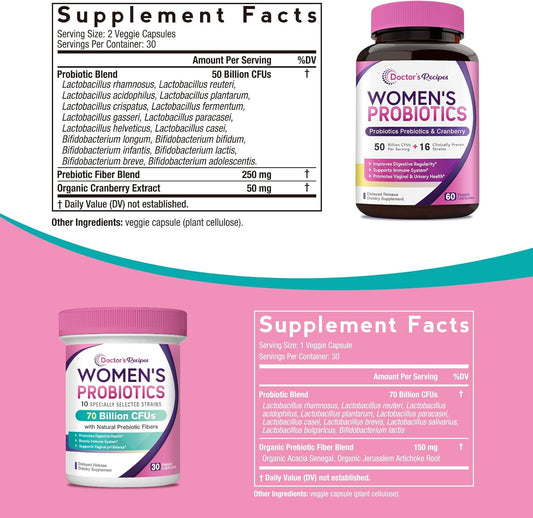 Women's Probiotics Bundle for Feminine Health & GI Support - Doctor's Recipes, Gluten-Free, 50 Billion & 70 Billion CFUsVendor:My StoreRegular price $110.16 AUDRegular priceUnit price / per-