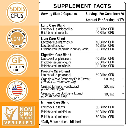 Men's Probiotic Supplement with Turmeric, Cranberry, Goji - 500 Billion CFUs, 12 Strains - Digestive, Immune, Prostate & Urinary Health - 90 Capsules