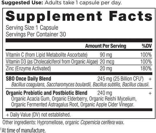 Ancient Nutrition SBO Probiotics with Vitamin C & D, 30Ct - 25B CFUs for Immune & Digestive Health