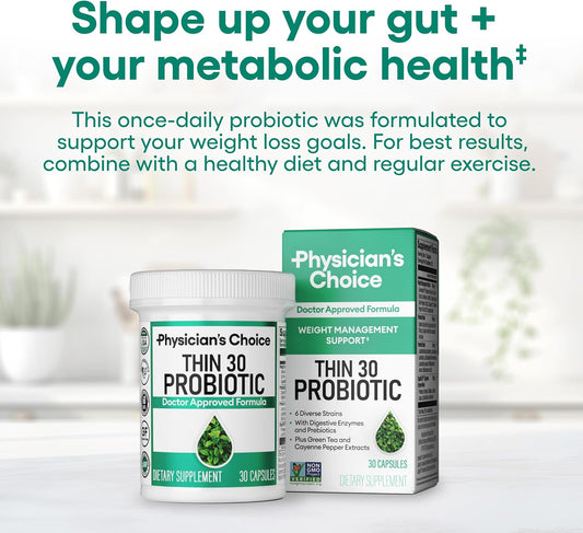 Physician's CHOICE Probiotics with Cayenne for Weight Management & Gut Health - 6 Strains, Prebiotics, Green Tea - 60 CT
