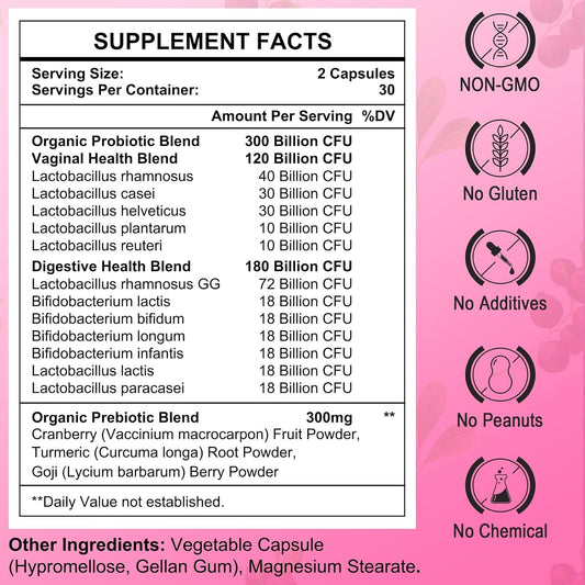 15-in-1 Women's Probiotic with 300 Billion CFUs for Vaginal, Urinary Tract, PH Balance & Immune Support - 60 Capsules