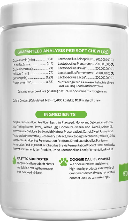 225 Dog Probiotic Soft Chews with Prebiotics for Digestive & Immune Health - Pumpkin Flavor