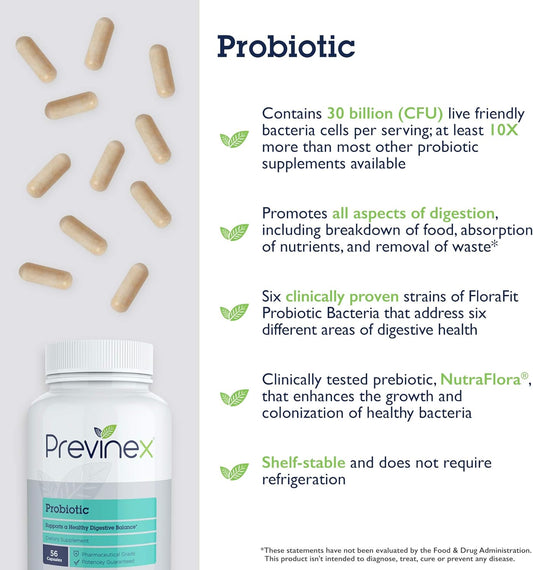 30 Billion CFU Previnex Probiotic with Prebiotics for Digestion & Immune Support
