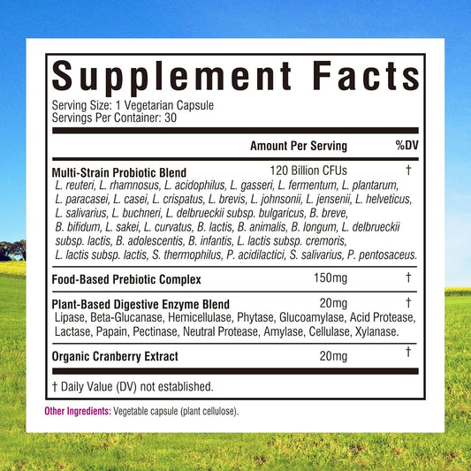 Women's Probiotics with 120 Billion CFU, 32 Strains, Yeast Control, Vaginal pH Support, Prebiotics, Digestive Enzymes, Cranberry - 30 Capsules