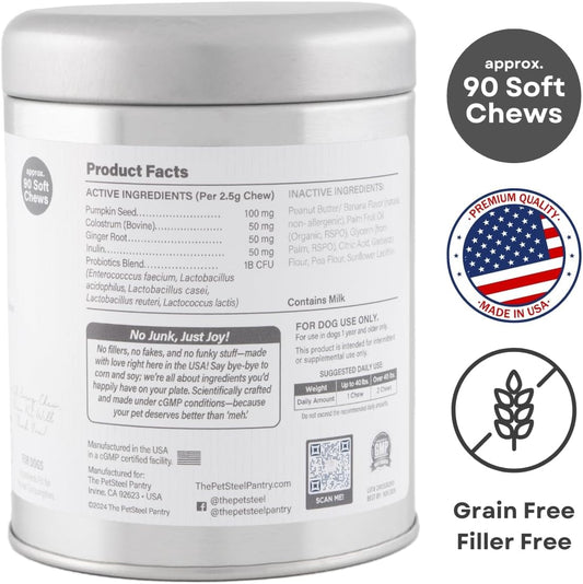 PetSteel Probiotic Dog Supplement with Prebiotics for Digestive Health, Allergy Support, and Joint Relief - 90 Soft Chews for Gut Health and Itchy Skin