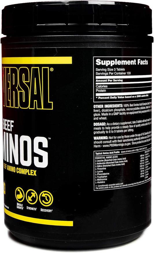 Universal Nutrition Beef Aminos: 100% Beef Protein Isolate for Recovery & Growth - 400 Tablets