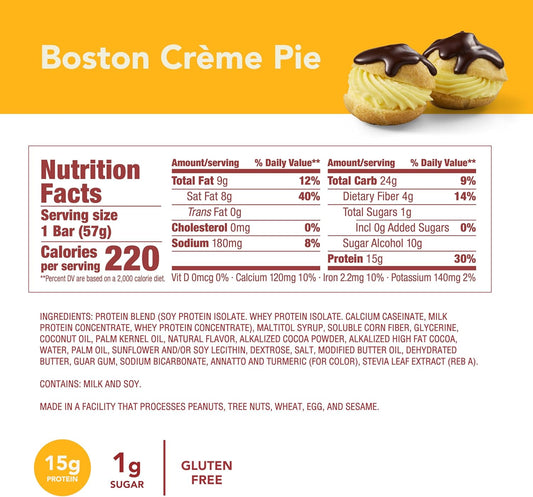 High Protein Gluten Free Kosher Friendly Boston Creme Pie Protein Bars - 10 Count