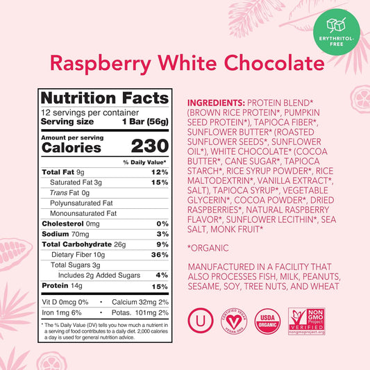 Limited Edition ALOHA Organic Plant Based Protein Bars - Raspberry White Chocolate - Vegan, Gluten Free, Low Carb - 12 Count, 1.98oz Bars