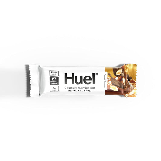 Plant-Based Huel Protein Bars with Peanut Caramel Flavor - 13g Protein, 27 Vitamins & Minerals, Low Sugar - Vegan Snack, 12 Pack
